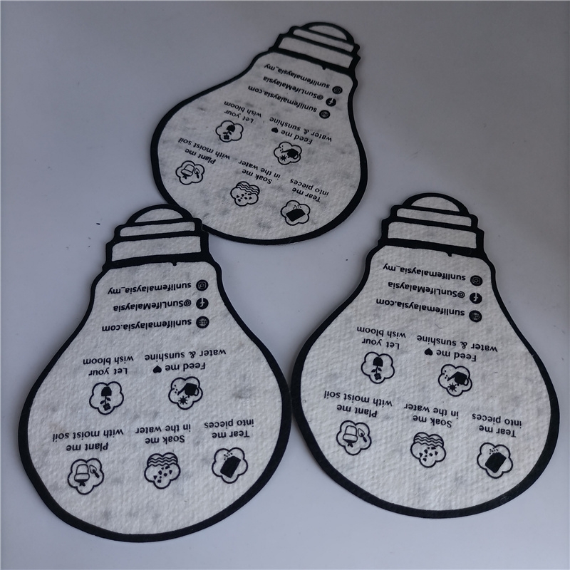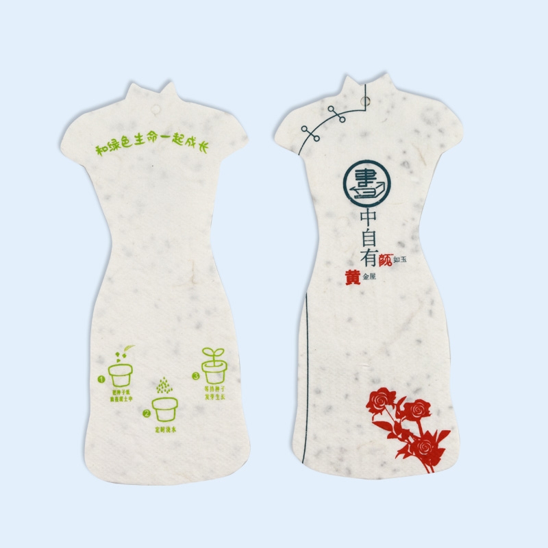 新型环保种子手工纸,是一种全新创意,纯手工制作。纸张中含有植物的种子,将其埋入土壤中,能给您带来意外的惊喜。种子纸可广泛使用于各种纸张设计,如:吊牌、名片、贺卡、包装盒等等,是一种既经济又环保的新型纸张