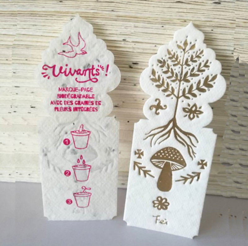 使用的纸浆源自再生纸与天然植物纤维,为了避免花草种子被破坏,种子纸必须全程手工制作,另外,基于传统印刷的限制,无法用机器或网版大量印制,只能选用费工的手工凸版印刷,才能制成一张「种子纸」